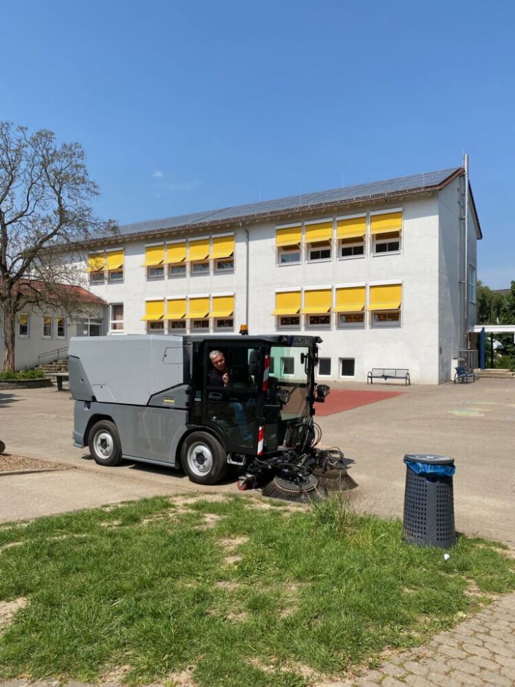 Am Montag schaute die Firma Kärcher mit einer Kehrmaschine unserem Schulhof vorbei. Zu Testzwecken wurde der Pausenhof auf Hochglanz gekehrt. Die Bürsten der Kehrmaschine drangen wirklich in jeden Winkel des Hofes. Das Ergebnis konnte sich sehen lassen. Blitzeblank präsentiert sich jetzt der Hof. Sehr zur Freude der gesamten Schulgemeinde. Auch unser neuer Hausmeister Herr Matthes war sichtlich zufrieden. Und was hat das nun mit King Charles III. zu tun hat? Nun ja, die Wege, die King Charles bei seiner Krönung in London beschritt wurden ebenfalls von einer Kärcher-Kehrmaschine gesäubert. Der Schulhof hat folglich also nun königliches Format!