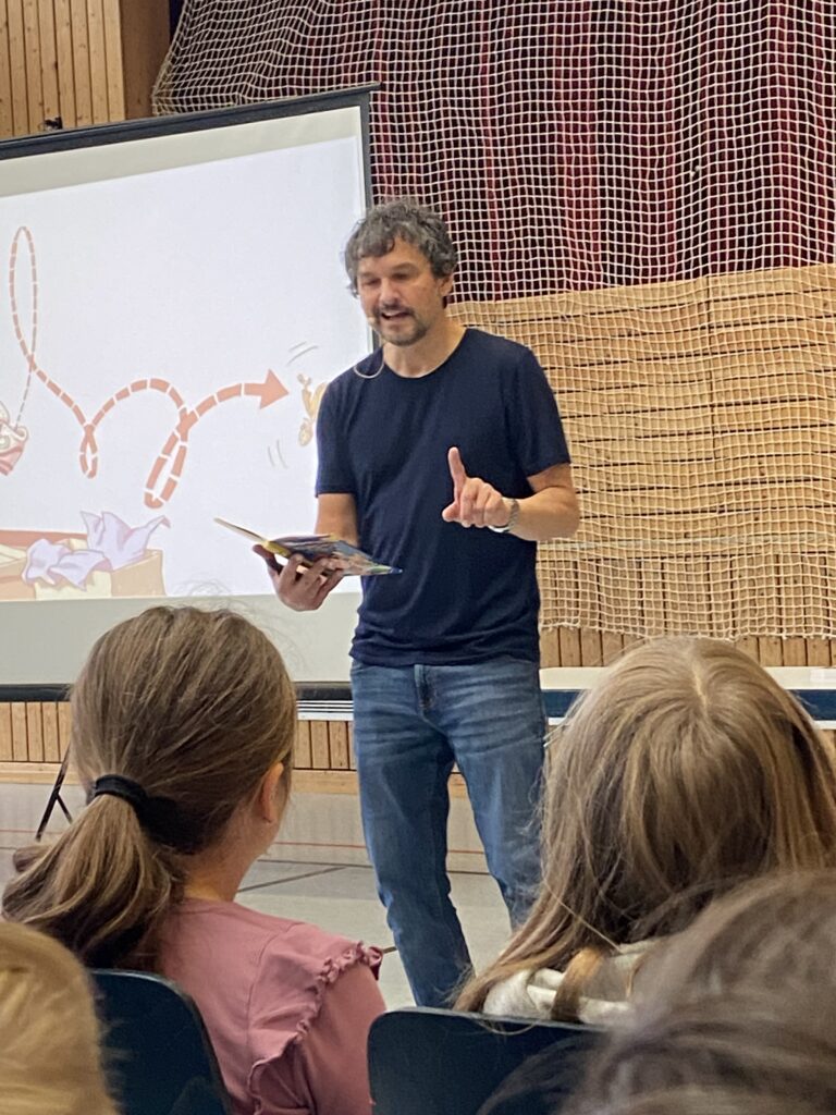 In der Zeit vom 13. bis 24. Oktober 2025 hat das Land Baden-Württemberg wieder alle Kulturträger eingeladen, am Frederick Tag aktiv teilzunehmen. Der Frederick Tag hat das Ziel, bei Kindern die Lust am Lesen zu steigern. Und so hat die Grundschule Nellmersbach „Lesetage“ ausgerufen. Der Höhepunkt war zweifellos der Besuch des Kinderbuchautors Michael Petrowitz an der Grundschule Nellmersbach. Der Berliner Petrowitz ist für sein Schaffen preisgekrönt.