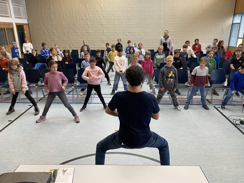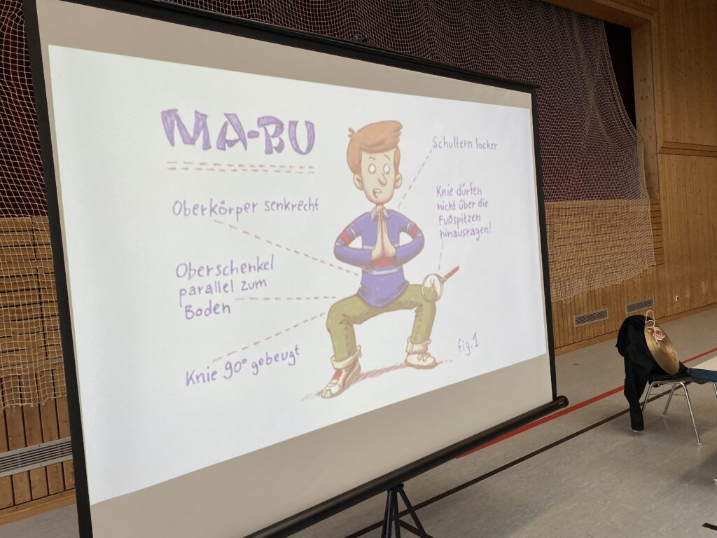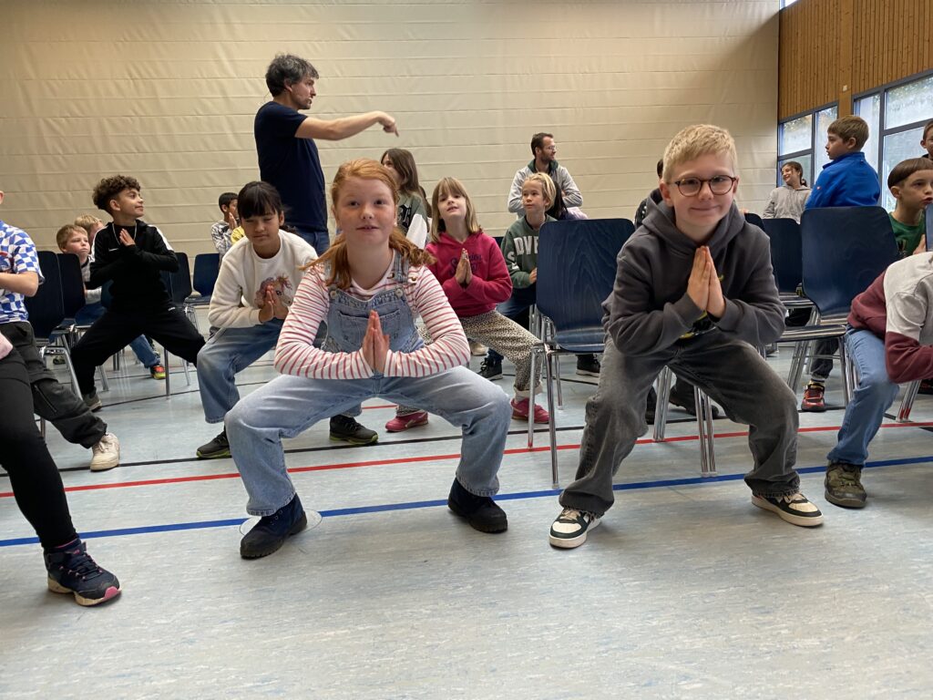 Michael Petrowitz zeigte uns die Übung „Ma-Bu“. Mit der Übung „Ma-Bu“ kann jeder seine Willenskraft zu trainieren. Dabei geht es nicht darum, es länger und besser als andere zu machen. Die Übung hilft uns, die eigenen persönlichen Grenzen zu erfahren. Sie hilft uns, mit Willenskraft ein Ziel zu erreichen und etwas zu Ende zu bringen. Diese Lehre war ein perfektes Match mit dem Schulmotto der Grundschule Nellmersbach. Auch mit „1, 2, 3, 4 – Da schaffen wir“ sagen wir: Du hast Potential, du kannst viel leisten und du wirst deine Ziele erreichen!
