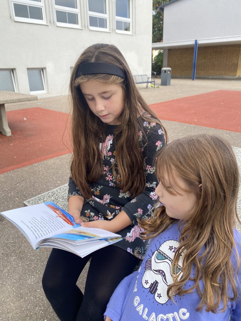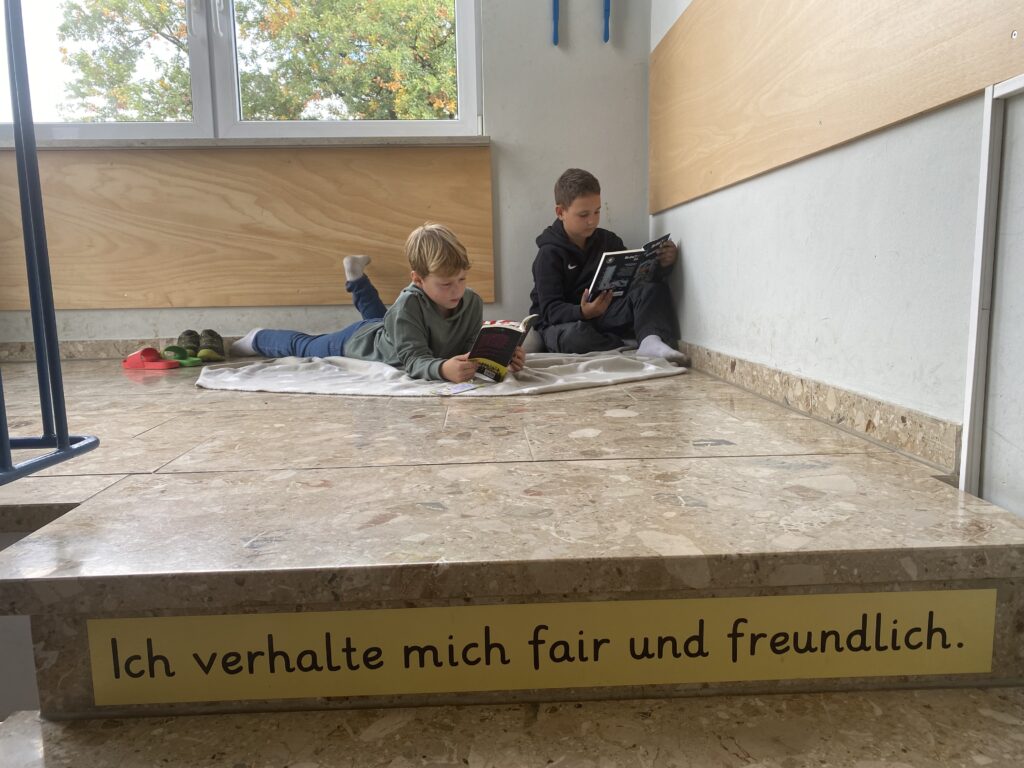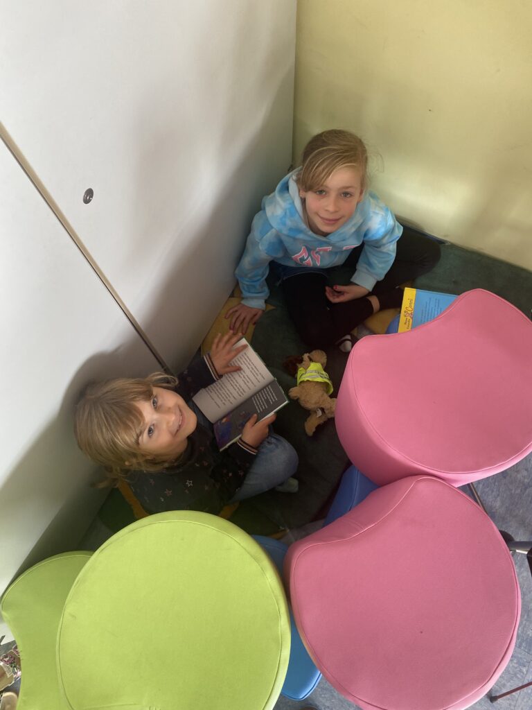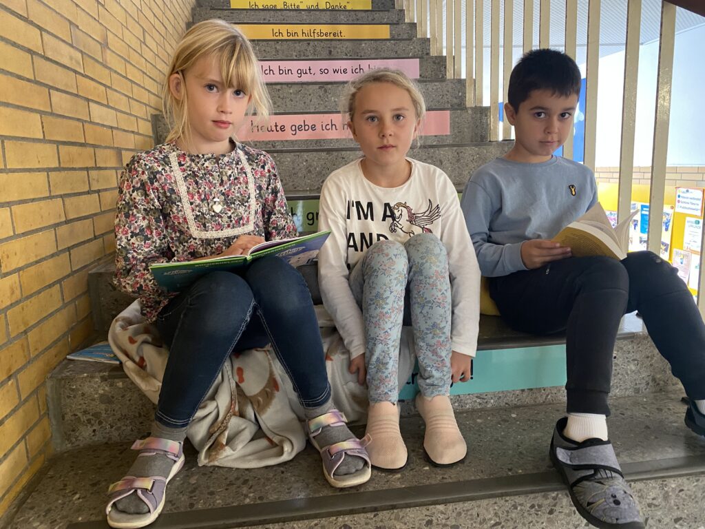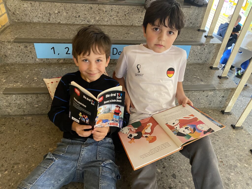 Und wo überall gelesen wurde! Auf dem Gang, im Klassenzimmer, auf dem Schulhof, unter dem Klavier, unter der Treppe, vor der Tafel und an vielen Plätzen mehr. Man munkelt sogar, jemand hätte auf der Toilette gelesen.