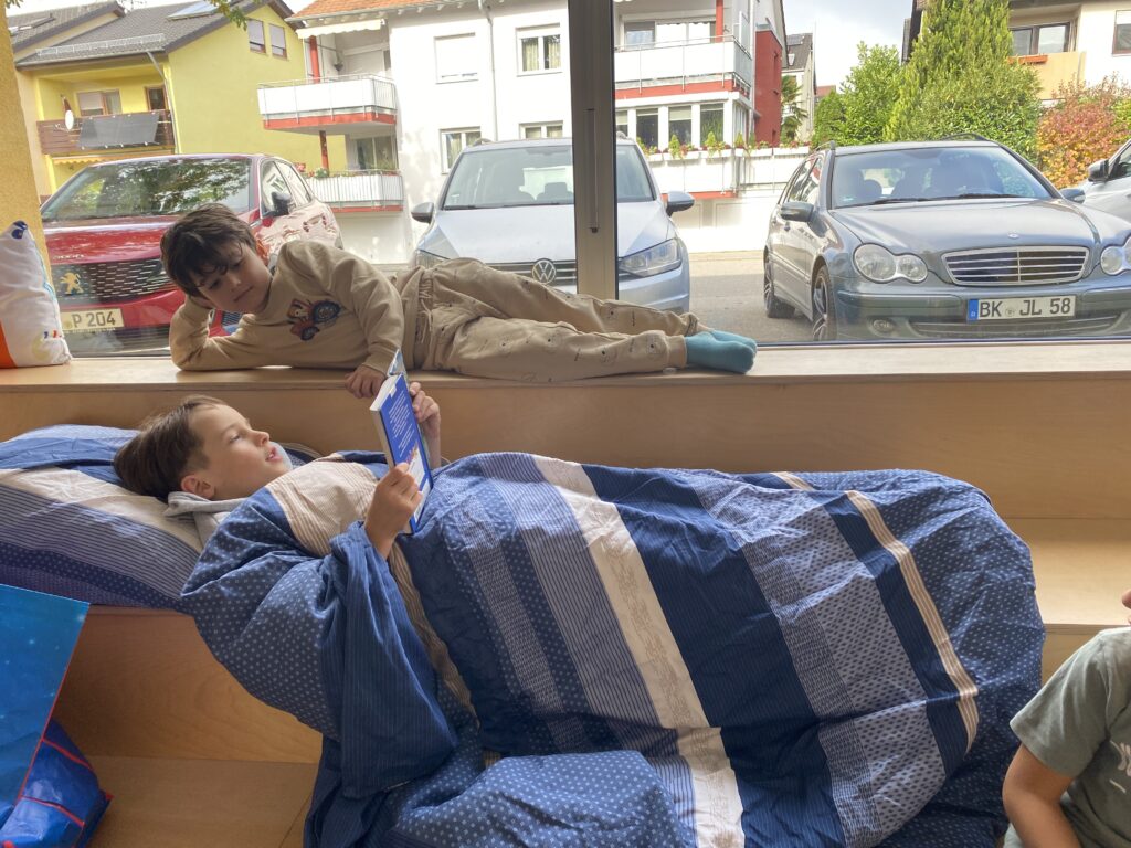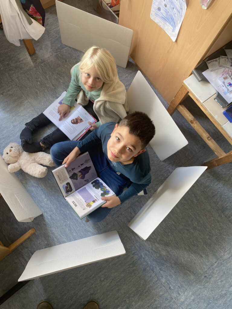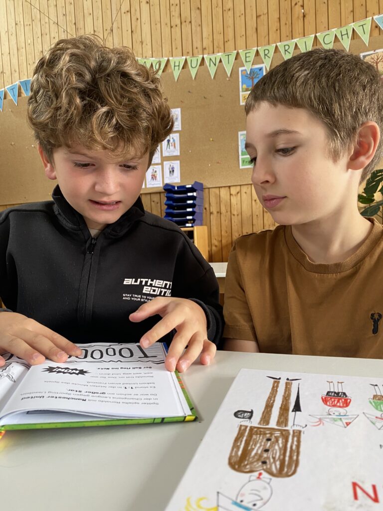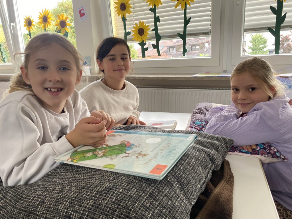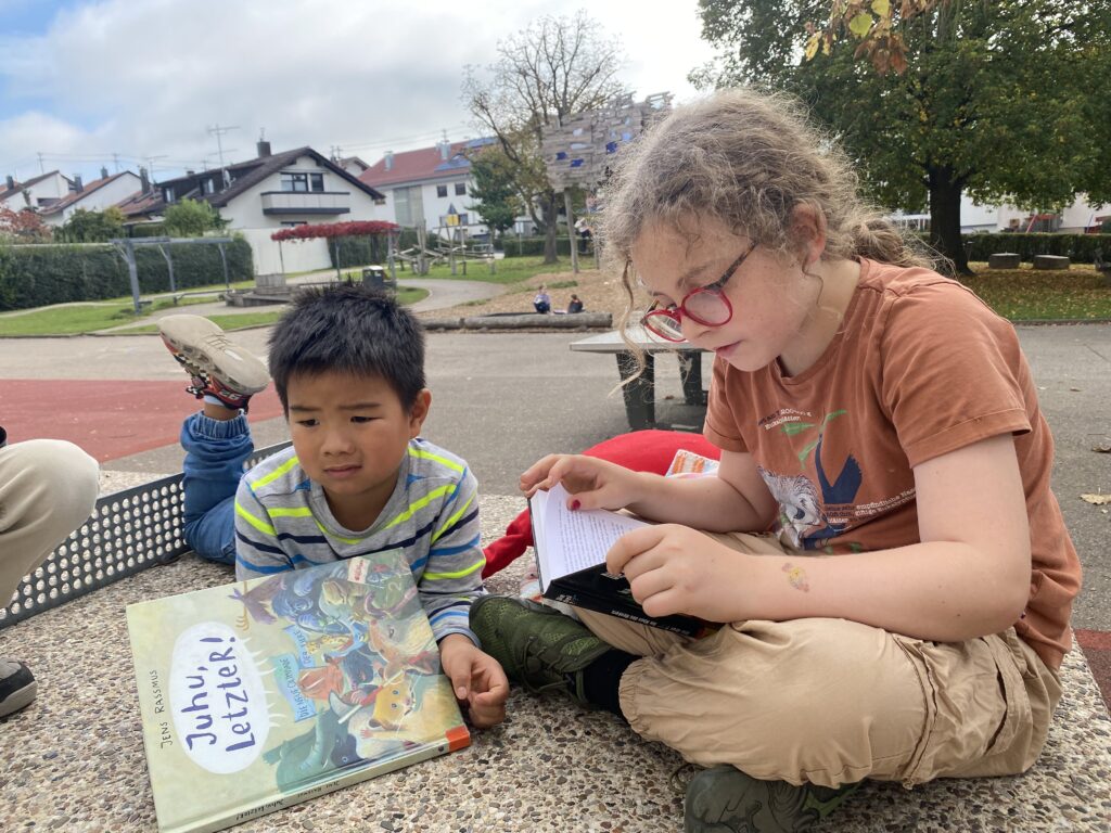 Und wo überall gelesen wurde! Auf dem Gang, im Klassenzimmer, auf dem Schulhof, unter dem Klavier, unter der Treppe, vor der Tafel und an vielen Plätzen mehr. Man munkelt sogar, jemand hätte auf der Toilette gelesen.